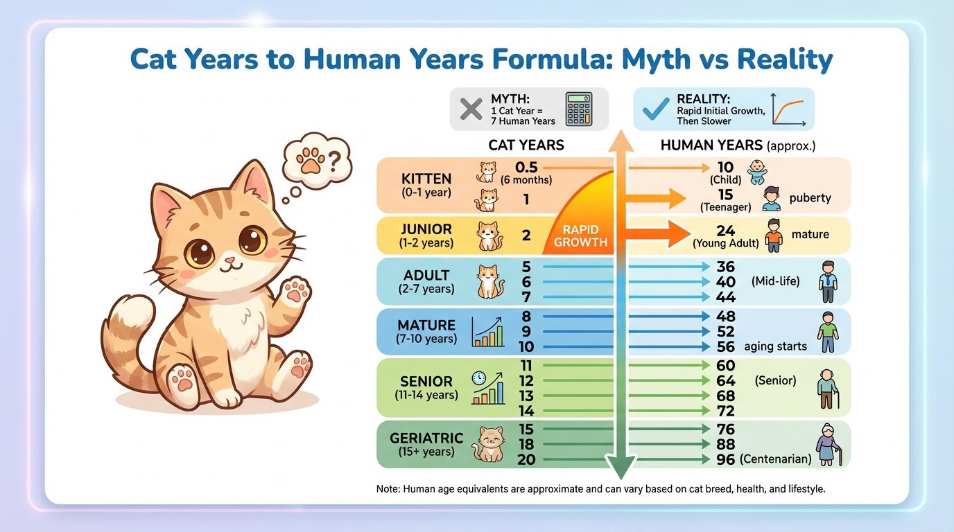 This article explains the real formula for converting cat years to human years, explores the myths and truths, breaks down life stages, and provides a complete age chart for easy reference.